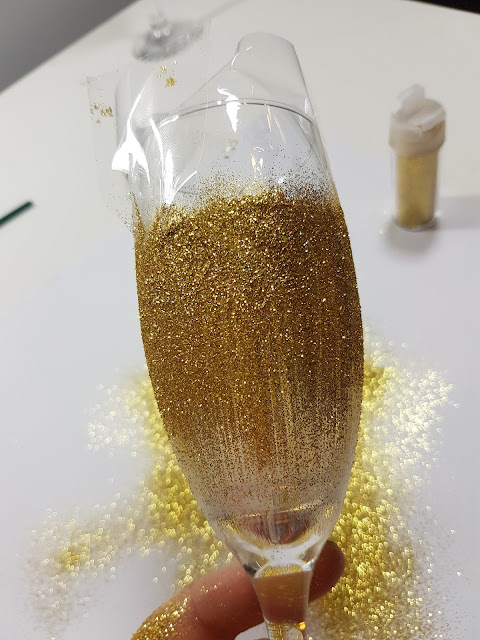 Tape off the part you dont want any glitter to fall, i taped off about 1" from the lip of the glass as that is where your lips will land when drinking and you dont want glitter in your mouth of course!